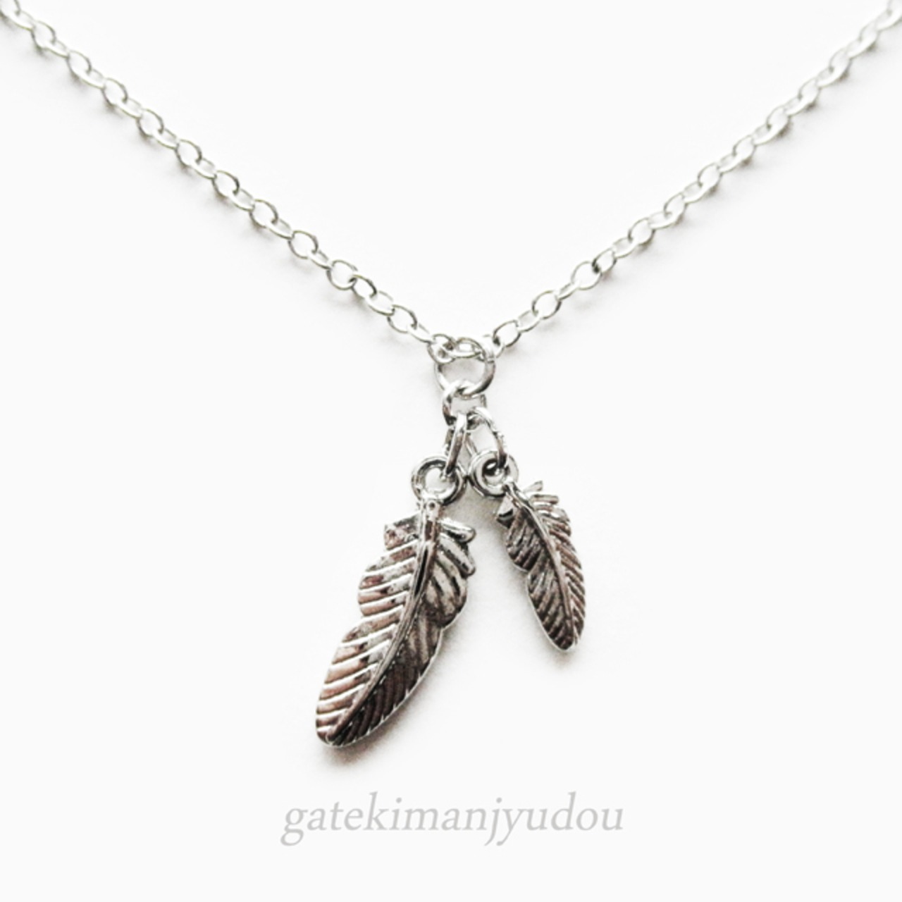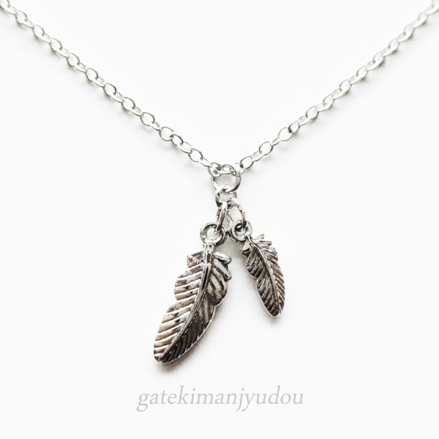 小ぶりのサイズ違いのフェザー(羽)モチーフのネックレスです。