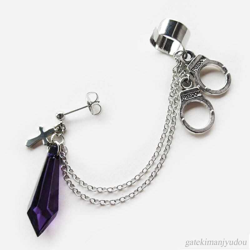 手錠&紫の雫†イヤーカフス&ピアス【フープイヤリング等パーツ交換無料】